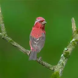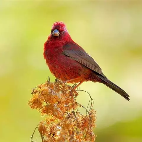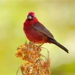 酒红朱雀小型鸟类,体长13~15厘米。雄鸟通体深红色,头部深朱红或棕红色,下背和腰玫瑰红色,…