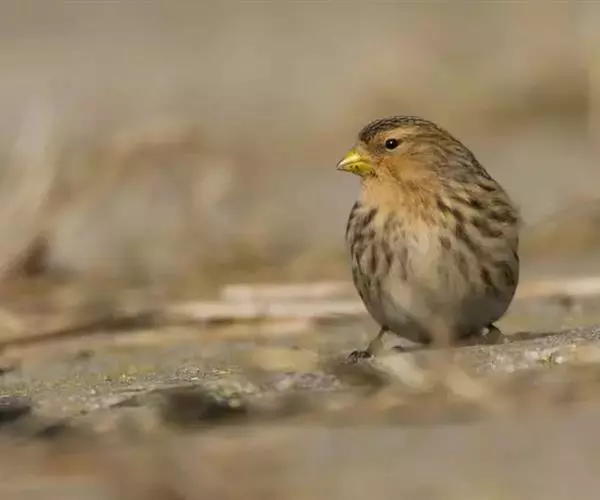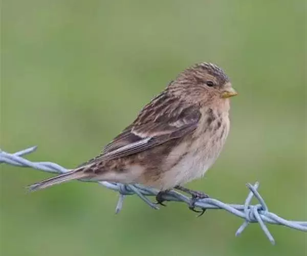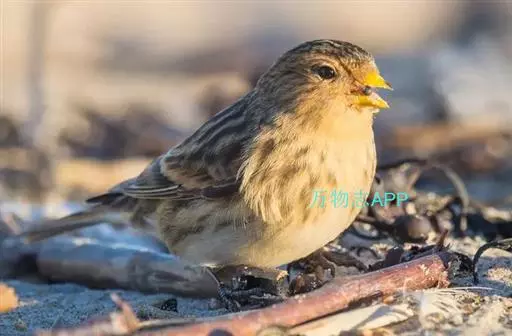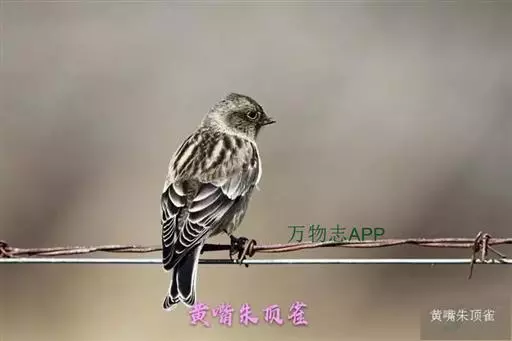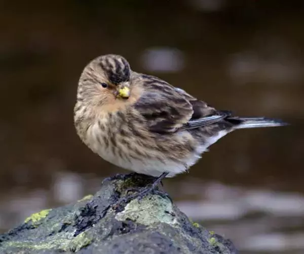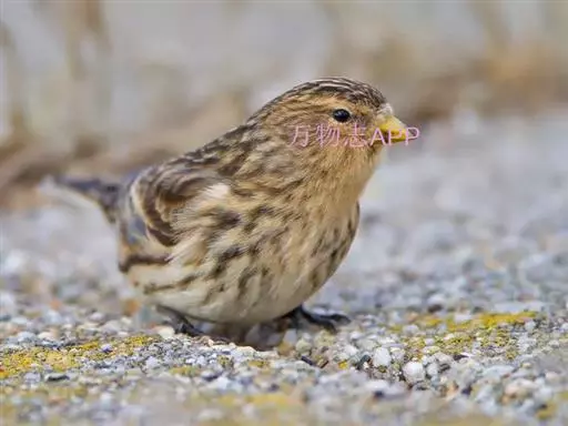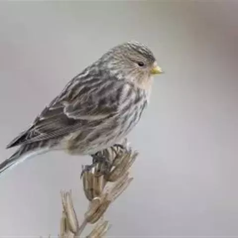 黄嘴朱顶雀(学名:Linaria flavirostris):为燕雀科金翅雀属的鸟类。体重10-18克,体长112-162毫米。是一种体型小的褐色具纵纹的雀鸟。腰粉红或近白。与其他朱顶雀的区别在头顶无红色点斑,体羽色深而多褐色,尾较长,叫声也不同。个体大小和羽色近似白腰朱顶雀,但额上和胸无红色,而腰部呈玫瑰红色;下体有暗色斑纹;雌鸟似雄鸟但腰暗,初级飞羽少白色边缘。与赤胸朱顶雀的区别在嘴黄且小,头褐色较浓,颈背及上背多纵纹,翼上及尾基部的白色较少。虹膜深褐色,嘴黄色;脚近黑色。