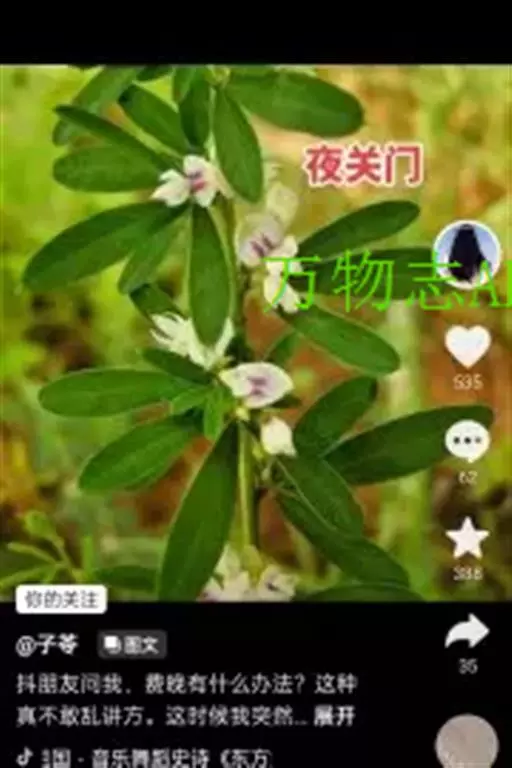 夜关门(中药名)、千里光、半天雷、绢毛胡枝子、小叶胡枝子。三叶公母草、鱼串草、铁马鞭
