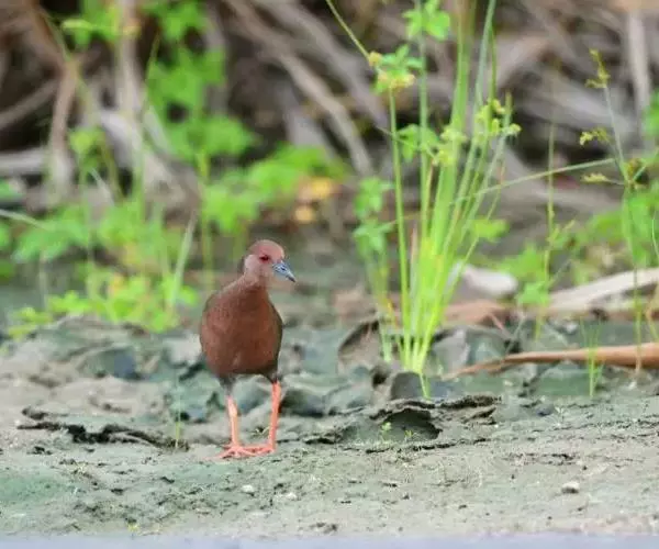红胸田鸡(学名:Porzana fusca)是鹤形目秧鸡科的鸟类,共有4个亚种。小型涉禽,体长19-23厘米。嘴粗短,跗蹠较中趾连爪长度为短。第2枚初级飞羽最长,并与第3枚初级飞羽几等长。第1枚初级飞羽约与第6枚或第7枚等长。上体深褐色或暗橄榄褐色,颏、喉白色;胸和上腹红栗色,下腹和两胁灰褐色、具白色横斑,脚红色。栖息于沼泽、湖滨与河岸草丛与灌丛、水塘、水稻田和沿海滩涂。主要以水生昆虫、软体动物和水生植物叶、芽、种子为食。常在黎明、黄昏和夜间活动,白天隐藏在灌丛与草丛中。性胆小,善奔跑和藏匿,飞行也很好。分布于日本、印度、斯里兰卡、泰国、菲律宾、印度尼西亚苏拉威西岛和中国。