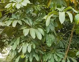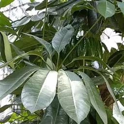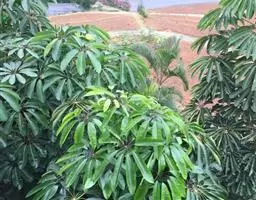昆士兰伞木,吕松鹅掌柴 ,称昆石兰遮树,澳洲鸭脚木、方式叶鹅掌柴、伞树、大叶伞。叶片阔大,柔软下…