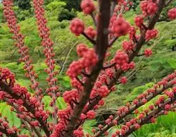 圆锥花序顶生,长20厘米以下, 主轴和分枝幼时密生星状绒毛,后毛渐脱净;伞形花序十几个至几十个总状排列在分枝上,有花3~10朵;苞片阔卵形,长0.5~1.5厘米,外面密生星状绒毛,早落;总花梗长不及5毫米,花梗长1.5~2.5毫米,均疏生星状绒毛;花白色,长约3毫米;萼长约1毫米,边缘全缘,无毛;花瓣5~6,有3脉,无毛;雄蕊和花瓣同数而等长;子房5~6室;无花柱,柱头5~6;花盘略隆起。