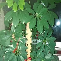 鹅掌藤系蔓性植物,不能直立生长,应设立支柱让其攀缘生长,以保持其美丽奇特的形态。