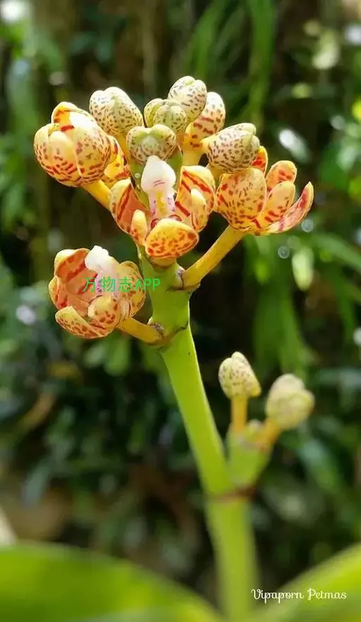多花指甲兰是兰科、指甲兰属植物。茎粗壮,叶肉质。花序叶腋生,柄粗壮,轴较长,密生许多花;花苞片绿色,…