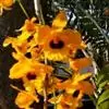 多花脆兰(Acampe rigida (Buch.-Ham. ex J. E. Smith) P. F. Hunt),又名黑山蔗、蕉兰、香蕉兰和脆兰,兰科脆兰属大型附生植物。茎粗壮,近直立,长达1米,叶近肉质,带状,斜立,花黄色带紫褐色横纹,不甚开展,具香气,萼片和花瓣近直立,花瓣狭倒卵形,唇瓣白色,厚肉质,3裂,蒴果近直立,圆柱形或长纺锤形,花期8-9月,果期10-11月。多花脆兰性喜阴,忌阳光直射,喜湿润,忌干燥,15℃至30℃最宜生长,常附生于海拔560-1600米的林中树干上或林下岩石上。多花脆兰产于我国,印度、缅甸、泰国、老挝等国也有分布。多花脆兰花瓣黄色并嵌有深红色条纹和斑点,唇瓣白色,风韵高雅,是兰科植物中极富观赏性的一种兰花,另外,多花脆兰具有较高的药用价值,其叶入药,外用治跌打损伤、骨折等。