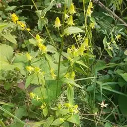 獐牙菜 Hook. f. & Thomson ex C. B. Clarke)是龙胆科、獐牙菜属一年生草本植物,高可达2米。根细,茎直立,圆形,中空,叶片椭圆形至卵状披针形,叶脉弧形,大型圆锥状复聚伞花序疏松,开展,多花;花梗较粗,花萼绿色,裂片狭倒披针形或狭椭圆形,花冠黄色,裂片椭圆形或长圆形,花丝线形,花药长圆形,子房无柄,披针形,花柱短,柱头小,头状,蒴果无柄,狭卵形,6-11月开花结果。分布于中国西藏、云南、贵州、四川、甘肃、陕西、山西、河北、河南、湖北、湖南、江西、安徽、江苏、浙江、福建、广东、广西。生于河滩、山坡草地、林下、灌丛中、沼泽地,海拔250-3000米。印度、尼泊尔、不丹、缅甸、越南、马来西亚、日本也有分布。獐牙菜全草可治急性黄疸性肝炎,胆囊炎,泌尿道感染,肠胃炎,疟疾,感冒发热,小儿麻痹等症。