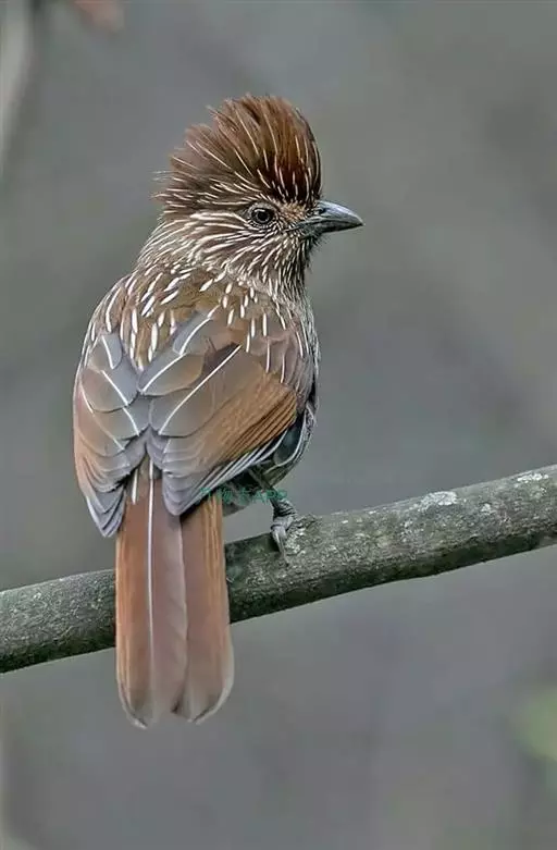 条纹噪鹛是画眉科、噪鹛属中型鸟类,体长28-32厘米。头具短的羽冠,上体栗褐色,飞羽外翻蓝灰色。…