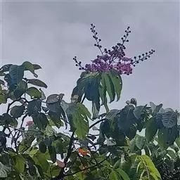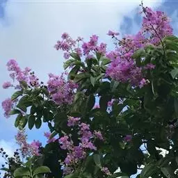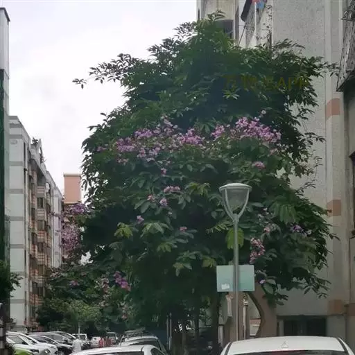 大花紫薇,别名:大叶紫薇,拉丁文名:Lagerstroemia speciosa Pers.千屈菜科、紫薇属大乔木,高可达25米;树皮灰色,平滑;小柱圆柱形,无毛或微被糠批状毛。叶革质,矩圆状椭圆形或卵状椭圆形,稀披针形,甚大,顶端钝形或短尖,基部阔楔形至圆形,两面均无毛,蒴果球形至倒卵状矩圆形,褐灰色,种子多数,花期5-7月,果期10-11月。 常栽培庭园供观赏;木材坚硬,耐腐力强,色红而亮,常用于家具、舟车、桥梁、电杆、枕木及建筑等,也作水中用材,其木材经济价值据云可与袖木相比;树皮及叶可作泻药;种子具有麻醉性;根含单宁,可作收敛剂。