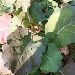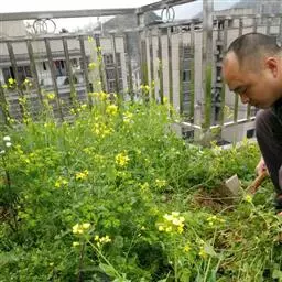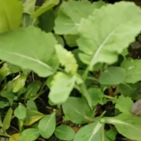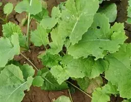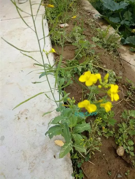 又名油菜。它的籽可以榨油。九、十月间插种,长出来的叶子形状颜色有点像白菜。