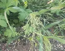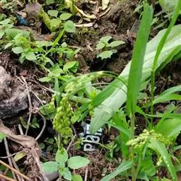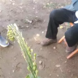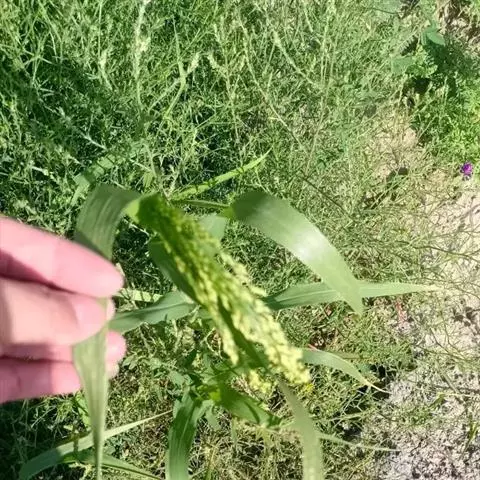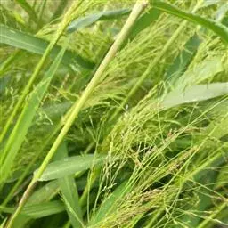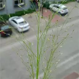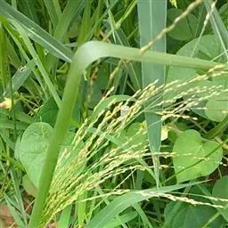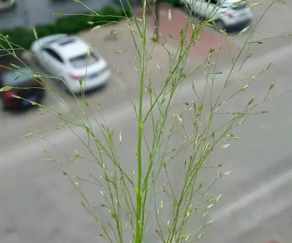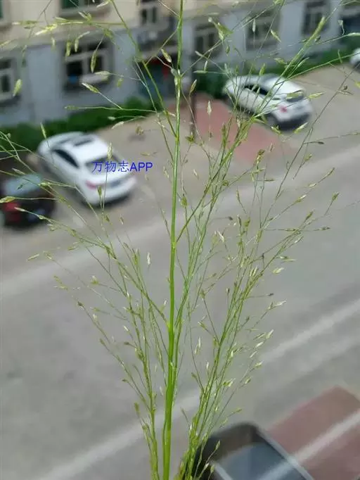 ,下部的常长于节间;叶舌膜质,截形,长约1毫米,顶端被睫毛;叶片线形,长8-15厘米,宽4-6毫米,质较柔软,顶端渐尖,基部圆钝,两面无毛。圆锥花序开展,长10-20厘米,宽可达15厘米,基部常为顶生叶鞘所包,花序分枝纤细,微粗糙,上举或开展;小穗卵状长圆形,长约3毫米,顶端尖,无毛,有柄,顶端膨大,柄长于小穗;第一颖宽卵形,顶端尖,长约为小穗的1/3,具3-5脉,或侧脉不明显;第二颖长卵形,与小穗等长,顶端喙尖,具11-13脉;第一外稃与第二颖同形,近等长,具9-11脉,内稃薄膜质,具2脊,几与外稃等长,但狭窄;第二外稃狭长圆形,革质,表面平滑,光亮,长约2.2毫米。鳞被细小,多脉,长约0.3毫米,宽约0.38毫米,局部折叠,肉质,染色体2n=54 (Ramanathan,1950)。