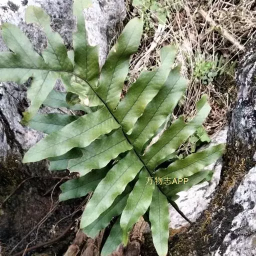多年生附生草本,高25–50厘米。根状茎粗壮;长而横走,密披棕褐色鳞片;鳞片线状钻形,边缘有不广卵形,长5–10厘米,宽3–6厘米,先端急尖,基部心40厘米,宽14–18厘米,具有狭翅的柄,羽状深裂,裂片7–13对,互生,阔披针形,长7–9厘米,宽2–3厘米,先端急尖或钝,下部羽片缩短,基部各羽片缩成耳状,厚纸质,绿色,无毛;叶脉明显,网状,粗而凸起。孢子囊群盖。孢子成熟期10–11月。