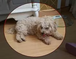 【头部】表情——活泼,温柔。眼睛为深棕色,中等大小,既不突出也不凹陷。眼眶为黑色。耳中等大小,耳根位置高,三角形,耳尖端稍圆,休息时,耳向下垂,贴近头部。警觉时,耳向上竖起。耳的上端与颅骨顶部在一个水平面上。颅骨平而宽,鼻梁轮廓不明显。吻部与颅骨几乎等长。吻部钝,但不突出。颅骨直而强壮。鼻为黑色。嘴唇无下垂。剪状咬合。