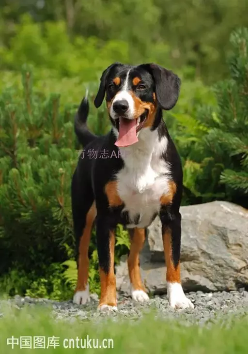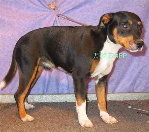 大瑞士山地犬 头部结实,吻部相对于颅骨较粗短,眼睛为谈褐色至粟色的多种颜色,眼神深沉温顺,充满智慧和爱。眼睛上侧有对称的棕褐色斑点。鼻子黑色。耳三角形,较小,下垂。颈部粗壮而短,胸部十分宽厚,背部结实健壮,背线平直。下腹微上提,但不太明显。前肢健壮,笔直;后肢粗壮结实。足中等大小,短而圆。尾始终下垂,不向上卷曲。被毛外层毛较粗硬,光顺平滑,长度不超过5厘米,另有厚实的内层毛。被毛颜色主要是黑色和棕褐色,棕褐色区域以黑或白斑分布边界。头部从额头到鼻子周围一条白色斑条,白色有的延伸到胸部、脚趾、尾端等。大瑞士山地犬,这种瑞士本地犬是大型斗牛獒犬最早的后代之一,古罗马人将这种大型斗牛獒犬带到阿尔卑斯山地区。在瑞士的偏远地区,大瑞士山地犬被农场主用于放牧牲畜、守卫和拉车。瑞士的四种猎犬中,大瑞士山地犬是体形最大最古老的一种。许多年来,瑞士以外的地区对大瑞士山地犬的起源知道得很少,但大瑞士山地犬对圣伯纳犬和罗威纳犬的早期发展是有帮助的。