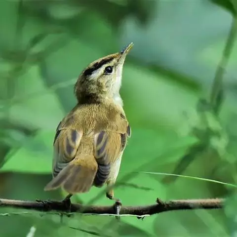 大苇莺:属小型鸟类,雌雄两性羽色相似。眉纹淡棕黄色;眼褐色;翅褐色具淡棕色的边缘;尾羽亦褐色,…