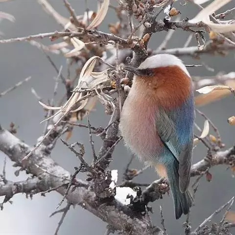 凤头雀莺:小型鸟类。体长9-10厘米,雄鸟呈毛茸茸的紫色和绛紫色,顶冠淡紫灰色,额及凤头白色,尾全蓝。…
