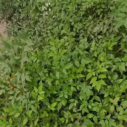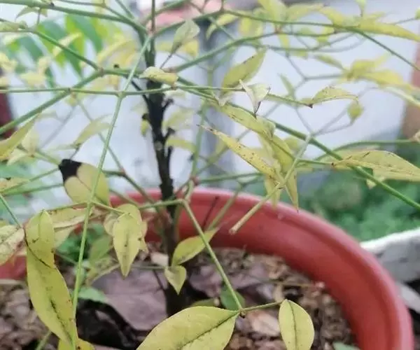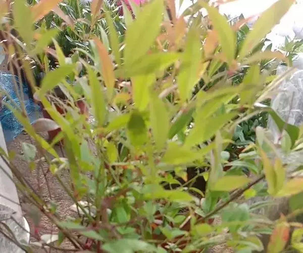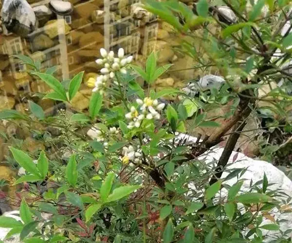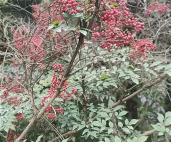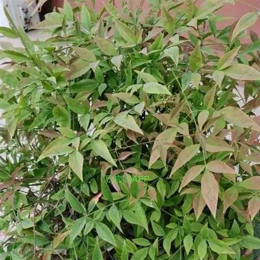 (3)水肥要因时因生长发育期而异。南天竹喜湿润但怕积水。生长发育期间浇水次数应随天气变化增减,每次都不宜过多。一般春秋季节每天浇水一次,夏季每天浇两次,保持盆土湿润即可。开花时,浇水的时间和水量需保持稳定,防止忽多忽少,忽湿忽干,不然易引起落花落果,冬季植株处于半休眠状态,要控制浇水。若浇水过多易徒长,妨碍休眠,影响来年开花结,果;南天竹喜肥,5~9月,可每15~20天施一次稀薄饼肥水,约每两个月浇一次0.2%硫酸亚铁水。幼苗期施液肥宜淡不宜浓(液肥与水按1:10),成株期可稍浓些(液肥与水按1:8)。雨季改施干肥,每月一次,每盆约20~40克。