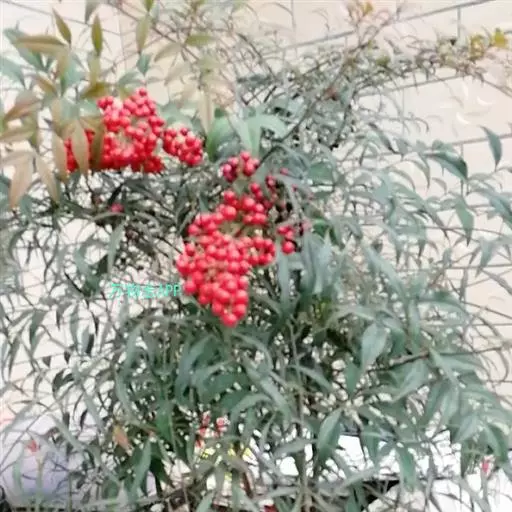 南天竹,别名:南天竺,红杷子,天烛子,红枸子,钻石黄,天竹,兰竹;拉丁文名:Nandina domestica.属毛茛目、小檗科下植物,是我国南方常见的木本花卉种类。由于其植株优美,果实鲜艳,对环境的适应性强,常常出现在园林应用中。常见栽培变种有:玉果南天竹,浆果成熟时为白色;绵丝南天竹,叶色细如丝;紫果南天竹,果实成熟时呈淡紫色;圆叶南天竹,叶圆形,且有光泽。因其形态优越清雅,也常被用以制作盆景或盆栽来装饰窗台、门厅、会场等。