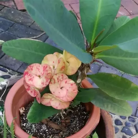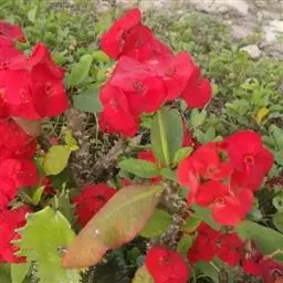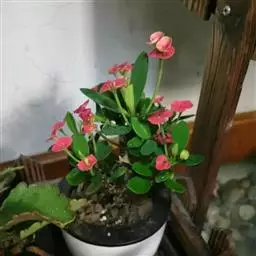 虎刺梅:别称铁海棠,是蔓生灌木植物。茎多分枝,长60-100厘米,直径5-10毫米,具纵棱,密生硬…
