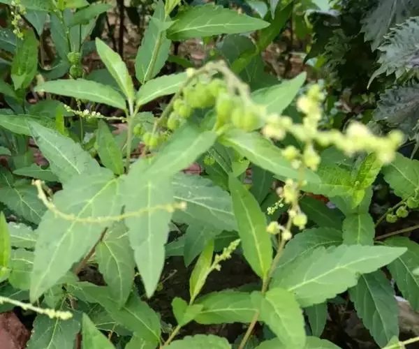 多年生草本;茎直立,高25-50厘米,分枝较多,被伏贴短柔毛。叶纸质,披针形或卵状披针形,长1.8-5.5厘米,宽0.5-2.5厘米,顶端渐尖,稀急尖,尖头钝,基部阔楔形或圆形,边缘具疏离圆齿或有时深裂,齿端具腺体,上面疏被短柔毛,下面被柔毛或仅叶脉被毛;叶柄长不及5毫米或近无柄;托叶卵状披针形,长约1.5毫米。总状花序长6-15厘米,上部有雄花20-30朵,下部有雌花6-10朵,位于花序中部的雌花的两侧有时具雄花1-2朵;苞片卵状披针形或卵形,长1-2毫米;雄花