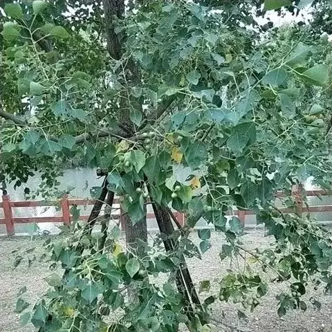 乌桕 Small)大戟科乌桕属木本植物。树皮为暗灰色,有竖向的裂纹;枝条展开很广,有皮孔;叶片互生,…