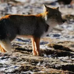 赤狐(学名:Vulpes vulpes):共有47个亚种。成兽体长62 - 72厘米,肩高40厘米,尾长20-40厘 ,体重5-7千克。毛色因季节和地区不同而有较大变异,一般背面棕灰或棕红色,腹部白色或黄白色,尾尖白色,耳背面黑色或黑褐色,四肢外侧黑色条纹延伸至足面。雄性略大。