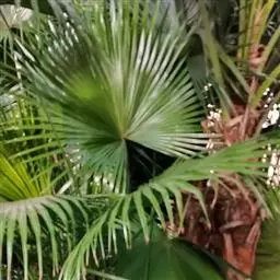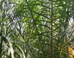 矮棕竹(学名:Rhapis humilis Bl.):丛生灌木,高1米或更高些,茎圆柱形,有节,上部被紧密的网状纤维的叶鞘,纤维毛发状,淡褐色。叶掌状深裂,裂片7-20片,线形,具1-2条肋脉,叶柄约与叶片等长,较细,两面凸起,边缘平滑。花雌雄异株,花序梗及每分枝基部为一个佛焰苞包着,小花枝纤细,枝条各部分被锈色鳞秕状绒毛;花蕾时为卵形,花萼杯状钟形,具不整齐的3裂。种子球形,直径约4.5毫米。花期7-8月。