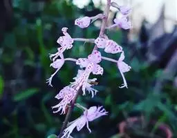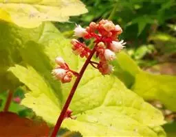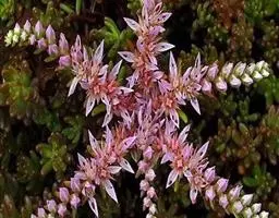 圆锥花序顶生,通常塔形,长16-40厘米,宽3-17厘米;下部第一回分枝长2.5-14.5厘米,与花序轴成35-50度角斜上;花序轴与花梗均被腺毛;小苞片狭卵形,长约2.1毫米,宽约1毫米,全缘或具齿;花梗长1-1.2毫米;萼片5,卵形、阔卵形至椭圆形,长1-2毫米,宽1-1.2毫米,先端钝或微凹且具微腺毛、边缘膜质,两面无毛;花瓣5,白色或紫色,线形,长2-4.5毫米,宽0.2-0.5毫米,先端急尖,单脉;雄蕊10,长1.3-5毫米;雌蕊长3.1-4毫米,心皮2,仅基部合生,子房半下位,花柱稍叉开。