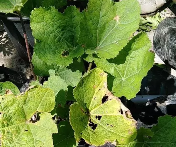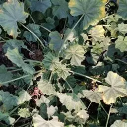 蜀葵 多年生老株蜀葵易发生蜀葵锈病,感病植株叶片变黄或枯死,叶背可见到棕褐色、粉末状的孢子堆。