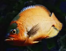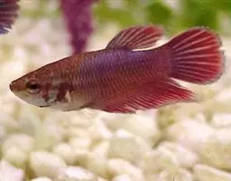 雄鱼的特征:雄鱼身体两侧体色呈暗紫红色,腹部有较多的黑色斑点,比雌鱼瘦小。雄鱼生殖孔比雌鱼稍大,呈淡红色,胸鳍、腹鳍呈蓝黑色的条纹。雄鱼比雌鱼的体色黑而鲜艳。