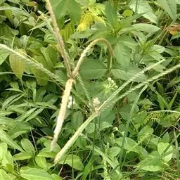 花:头状花序卵球形,直径1.5-2.5 毫米,无梗,直立或微倾斜,在分枝上疏离着生成穗状花序,而在茎上排成开展的圆锥花序;总苞片3-4层,外、中层卵形或长卵形,背面中部绿色,无毛,边膜质,内层椭圆形或长椭圆形,半膜质;雌花3-6朵,花冠狭管状,檐部具2(-3)裂齿,花柱伸出花冠外,先端2叉、叉端尖;两性花6-10朵,不孕育,花冠管状,花药线形,先端附属物尖、长三角形,基部具短尖头,花柱短,先端2裂,不叉开,退化子房小。