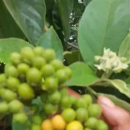 浆果单生,球状,珊瑚红色或桔黄色,直径1-2厘米;种子扁平,直径约3毫米。花期4-7月,果熟期8-12月。