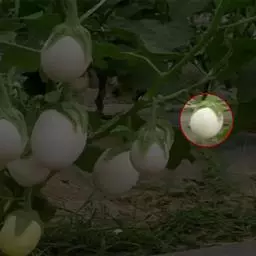 植株进入孕蕾时期,暂停施肥,同时控制浇水,尽量不要喷水,既可避免冲淋去花粉。喷施壮果蒂灵,增粗果蒂,提高营养输送量,防落花、落果。果实长至绿豆大小时,可恢复浇施饼肥水,并增加浇水量,同时给予适当的叶面喷水。