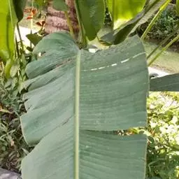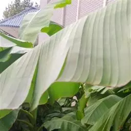 红蕉,假茎高1-2米。叶片长圆形,长1.8-2.2米,宽68-80厘米,叶面黄绿色,叶背淡黄绿色,…
