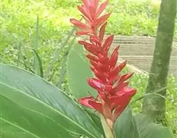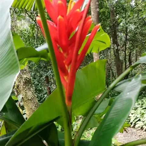 紫苞芭蕉形如一枝亭亭玉立、含苞待放的荷花,但却开在高高的芭蕉树上,这就是紫苞芭蕉。