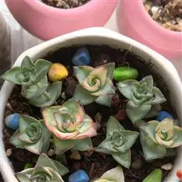 爱染锦,别名黄笠姬锦、墨染,景天科莲花掌属多肉植物,矮小灌木状植株。…