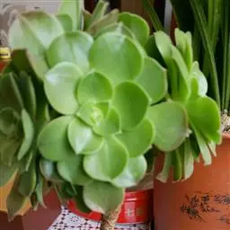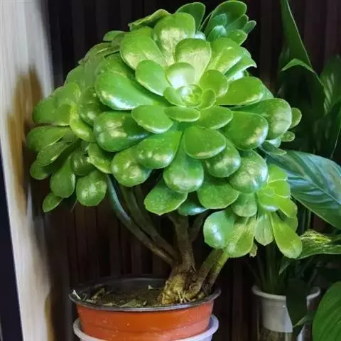盆栽观赏价值:玉龙观音,莲花掌里面的巨无霸,可以生长到非常大,叶片张开后甚至与雨伞差不多,颜色常年为绿色。具有极高的观赏价值。