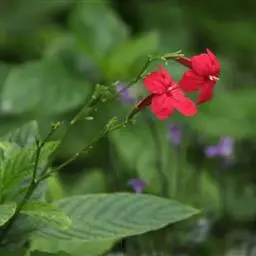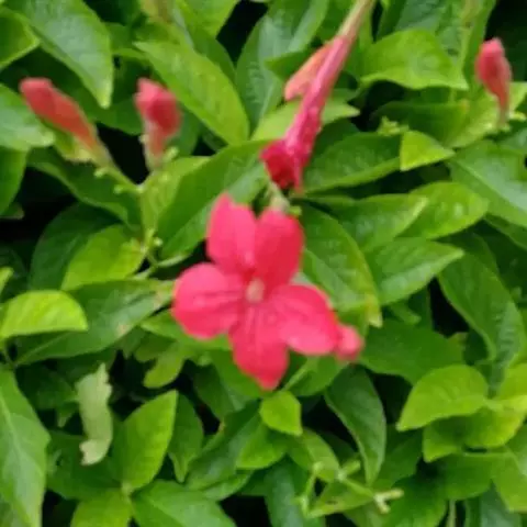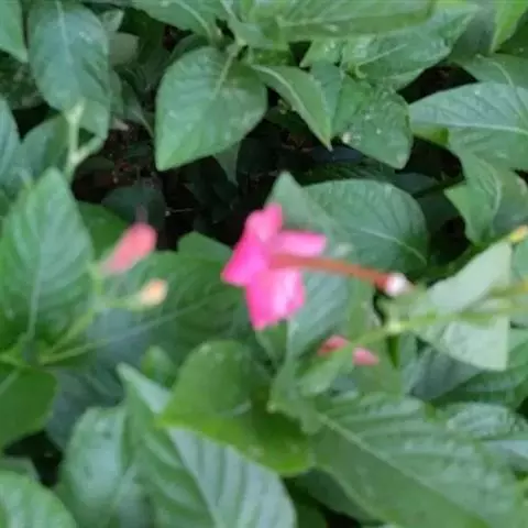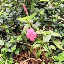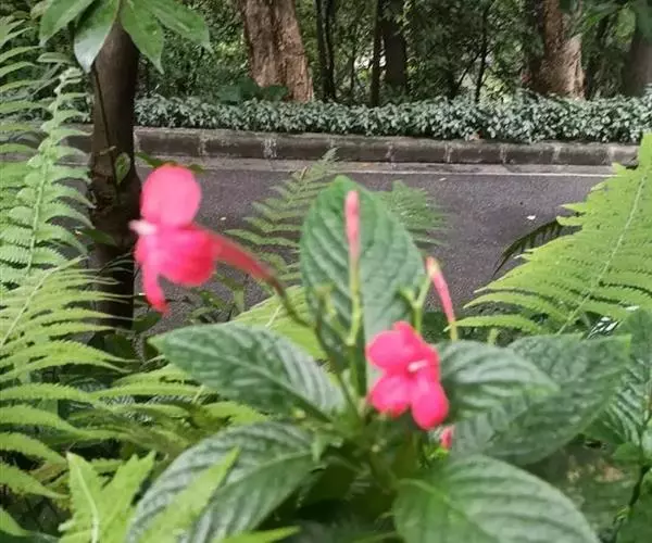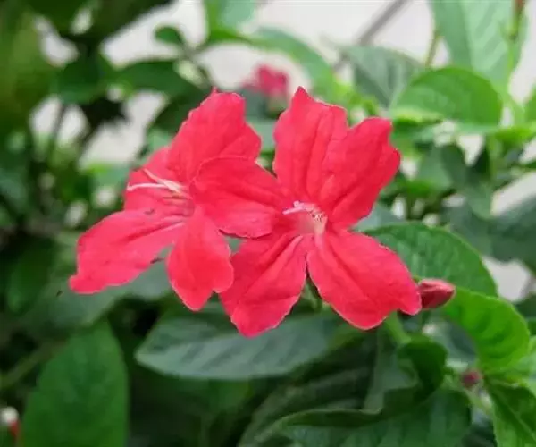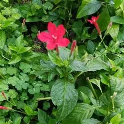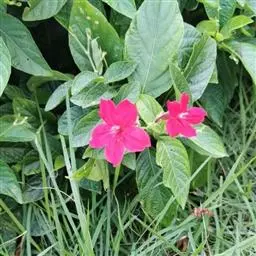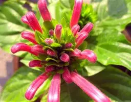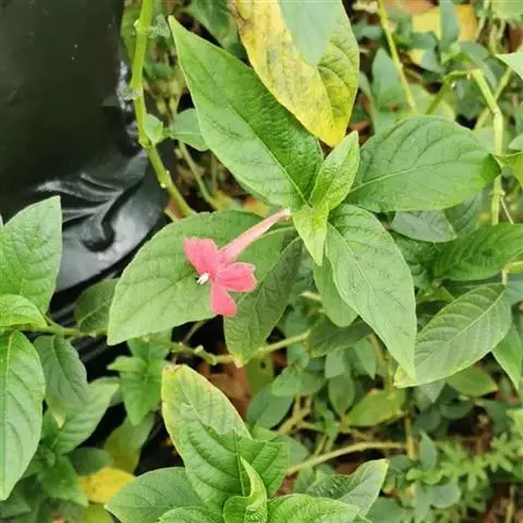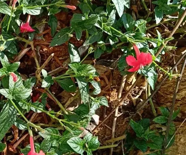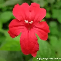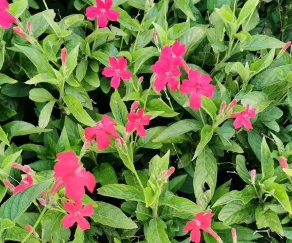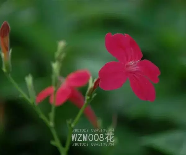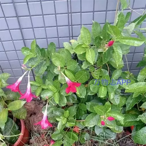 腋生,花冠圆筒状,先端五裂,花色浓鲜桃红色,开花不断。