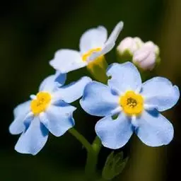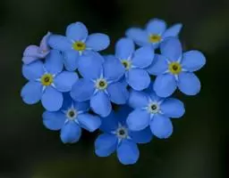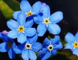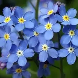 勿忘草 勿忘草株形柔美,茎枝纤细,叶片的形状很像柳树的叶子,无数朵小蓝花开满茎顶部的每个小枝,花瓣的蓝色仿佛是由天空的颜色染成的让人充满无限遐想。花朵中央有一圈黄色心蕊色彩搭配非常和谐。