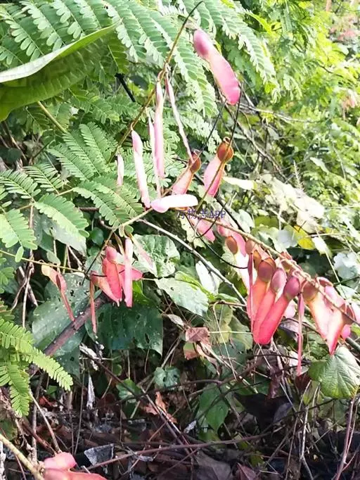 老虎刺,又名雀不踏。木质藤本或攀援性灌木,高3-10米;小枝具棱,幼嫩时银白色,被短柔毛及浅黄色毛,老后脱落,具散生的、或于叶柄基部具成对的黑色、下弯的短钩刺。叶轴长12-20厘米;叶柄长3-5厘米,亦有成对黑色托叶刺;羽片9-14对,狭长;羽轴长5-8厘米,上面具槽,小叶片19-30对,对生,狭长圆形,中部的长9-10毫米,宽2-2.5毫米,顶端圆钝具凸尖或微凹,基部微偏斜,两面被黄色毛,下面毛更密,具明显或不明显的黑点;脉不明显;小叶柄短,具关节。总状花序被短柔毛,长8-13厘米,宽1.5-2.5厘米,腋上生或于枝顶排列成圆锥状;苞片刺毛状,长3-5毫米,极早落;花梗纤细,长2-4毫米,相距1-2毫米;花蕾倒卵形,长4.5毫米,被茸毛;萼片5,最下面一片较长,舟形,长约4毫米,具睫毛,其余的长椭圆形,长约3毫米;花瓣相等,稍长于萼,倒卵形,顶端稍呈啮蚀状;雄蕊10枚,等长,伸出,花丝长5-6厘米,中部以下被柔毛,花药宽卵形,长约1毫米;子房扁平,一侧具纤毛,花柱光滑,柱头漏斗形,无纤毛,胚珠2颗。荚果长4-6厘米,发育部分菱形,长1.6-2厘米,宽1-1.3厘米,翅一边直,另一边弯曲,长约4厘米,宽1.3-1.5厘米,光亮,颈部具宿存的花柱;种子单一,椭圆形,扁,长约8毫米。花期6-8月;果期9月至次年1月。