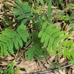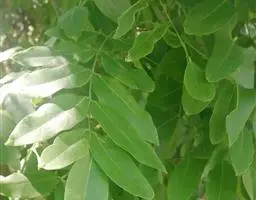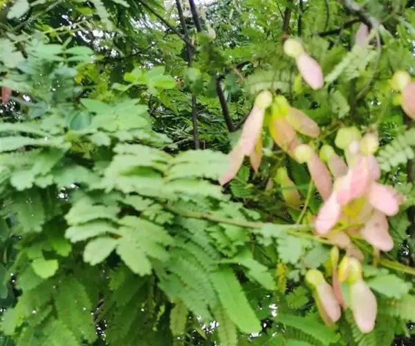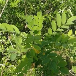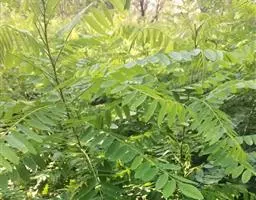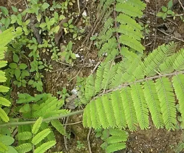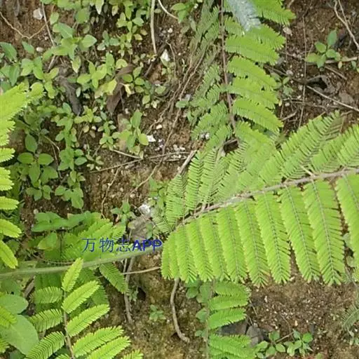 多为小叶。完整的叶为二回羽状复叶,羽片20-28个,每羽片有小叶20-30片,皱缩。湿润展平后小叶片椭圆形,微偏斜,长约1cm,宽3-4mm,先端钝圆而微凹,基部斜圆形,全缘,主脉明显。绿色或枯绿色。质脆,气微。