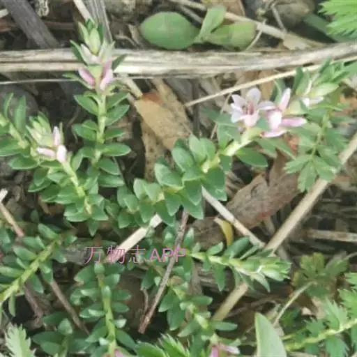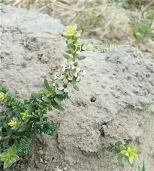 多年生小草本,高5-25厘米。根常数条束生,较粗壮,径1-2毫米;根状茎横走,粗达2毫米,节部被对生的卵状膜质鳞片。茎直立或斜生,通常单一或下部分枝,无毛,基部节上被淡褐色卵形膜质鳞片状叶。叶密集,肉质,交互对生、近对生或互生,近无柄或有短柄;叶片线形、长圆状披针形至卵状披针形,长5-15毫米,宽1.8-3.5毫米,基部楔形,先端钝,全缘。花小,腋生,花梗长约1毫米;花萼广钟形,花冠状,粉白色至蔷薇色,直径5-6毫米,5中裂,裂片长圆状卵形至卵形,长2-2.5毫米,宽约2毫米,全缘;无花冠;雄蕊5,与萼近等长或稍短。花丝基部扁宽,长约4毫米,花药心形,背部着生;子房卵形,长约1.3毫米,花柱细长,长约2.5毫米,超出花萼,胚珠8-9枚。蒴果卵状球形,长2毫米,径约2.5毫米,顶端瓣裂。种子6-8粒,棕褐色,近椭圆形,长约1毫米,宽约0.8毫米,背面扁平,腹面凸出,有2-4条棱,种皮具网纹。花期6月,果期7-8月。