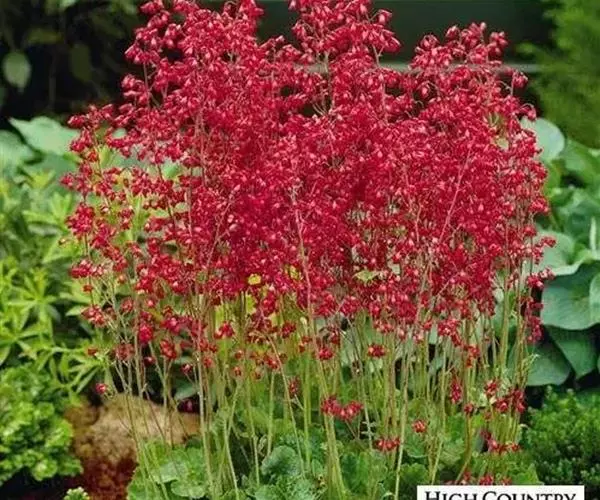 红花矾根(Heuchera sanguinea Engelm)虎耳草科矾根属植物,多年生耐寒草本,高度10-50cm,叶近圆形,缘具圆齿,阔心形,花小钟状,小花着生在总花便上形成圆锥花序,花期5-6月。