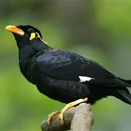 黑冠椋鸟:中等体型的椋鸟,体长21厘米。雄鸟前头为黑色并具金属光泽;头顶、颈项和羽冠亦为黑色;翅及翅上覆羽黑色;尾羽褐色,具白色端斑;上体灰色;下体淡黄褐色。雌鸟形态与雄鸟相似,但羽冠较雄鸟为短。虹膜蓝白或乳黄色;嘴峰铅绿色;跗蹠及爪柠檬黄色。头具黑色羽冠,与其他椋鸟易于区别。主要栖息于开阔落叶阔叶林和灌木林中以及多营巢于树洞中或其他洞穴内。属群鸟共栖。常4-8只结小群活动。鸣声清脆响亮。食物有果实和浆果,偶食花蜜和小型昆虫。分布于印度、中国云南耿马。常见于印度城镇、村庄及铁路沿线。偶见于中国云南西南部和西藏东南部。