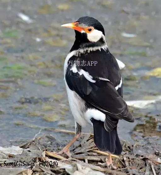 斑椋鸟(学名:Sturnus contra):是中等体型的黑白色椋鸟,体长24厘米。头顶、头侧、翼斑、腰及腹部白色,喉、胸及上体余部黑色,亚成鸟褐色。 虹膜灰色;眼周裸露皮肤橘黄;嘴黄色,嘴基红色;脚黄色。