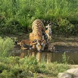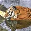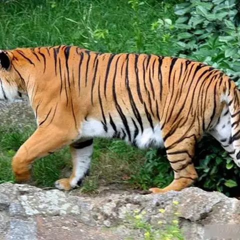 孟加拉虎是肉食目猫科豹属哺乳动物,又名印支虎。头圆、耳短、额阔,额部有数条黑色横纹,…