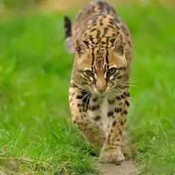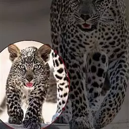 花豹是大型肉食性动物,体形似虎,但明显较小;头小尾长,四肢短健;毛被黄色,满布黑色环斑;头部的斑点…