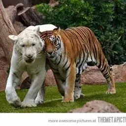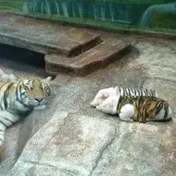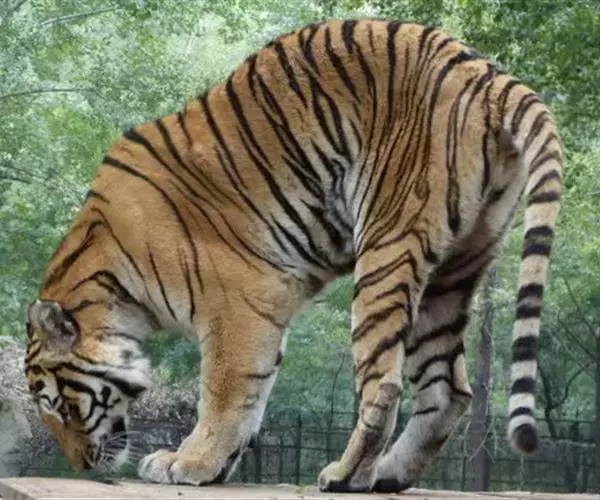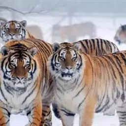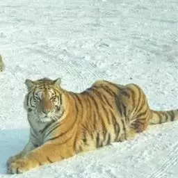 西伯利亚虎(学名:Panthera tigris ssp.altaica):又称东北虎,是虎的亚种之一。是现存体重最大的肉食性猫科动物,其中雄性体长可达3米左右,尾长约1米,体重达到350千克左右。野生西伯利亚虎体色夏毛棕黄色,冬毛淡黄色。背部和体侧具有多条横列黑色窄条纹,通常2条靠近呈柳叶状。头大而圆,前额上的数条黑色横纹,中间常被串通,极似“王”字,故有“丛林之王”之美称。
