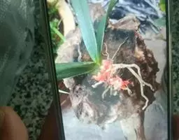 方法一 准备好兰盆及植料后,将兰株倒拿(根在上,叶在下)放于水龙头下以慢水冲洗,但水压切忌过强,以免伤兰根及叶子。用拇指和食指抓住兰头,小指抵住盆缘,用竹筷将根固定,当放入盆内时,尽量不要让根接触到盆壁。将豆粒大的混合石砾倒入盆底至三分之一处。然后倒入中粒植料至五分之四处,填实和尽量不要留下空间。将竹筷拔出,并摇实盆中植料。填实植料后,再用大粒植料埴入至距盆缘1.5厘米处。最后再倒入豆粒大植料,以将假鳞茎全部埋入土中为度,然后充分摇实。用压土工具轻压植料,并将表面弄平。种植完毕后,植料在盆中以中央稍高为好。
