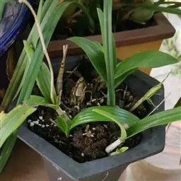 上盆(或翻盆)时间一般在春季3-4月或秋季10-11月。花盆以口小、盆深、底孔大的为佳。新从山上挖来的野生苗需理植于瓦盆(泥盆)中,这样兰花泥易干,通气性好.容易发根;2-3年后方可换人紫砂盆或瓷盆。兰花种植(在盆中)的方法与一般花卉不同,尤其是名种兰花,翻种移盆必须洗根。方法足将根浸入清水中,用旧牙刷或毛笔轻轻洗刷,切勿用力过大伤根;用剪刀将残叶、黄叶、断裂根、发黑腐烂根剪去,注意勿伤幼芽。然后将处理好的植株放在阴凉通风处晾干,待根部发白并显细小皱纹柔软时,再植入盆中。