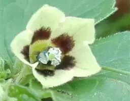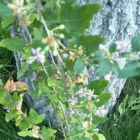 花1-2朵生于短枝上;花梗细瘦,长0.5-1厘米。花萼狭钟状,长4-5毫米,果时稍膨大成半球状,包围于果实中下部,不规则2-4浅裂,裂片膜质,边缘有稀疏缘毛;花冠漏斗状,浅紫色,长约1.2厘米,筒部向檐部稍扩大,5浅裂,裂片矩圆状卵形,长约为筒部的1/2-1/3,无缘毛,耳片不明显;雄蕊稍伸出花冠,着生于花冠筒中部,花丝离基部稍上处有疏绒毛,同样在花冠内壁等高处亦有稀疏绒毛;花柱与雄蕊近等长。浆果紫黑色,球状,有时顶端稍凹陷,直径4-9毫米。种子肾形,褐色,长1.5毫米,宽2毫米。花果期5-10月。